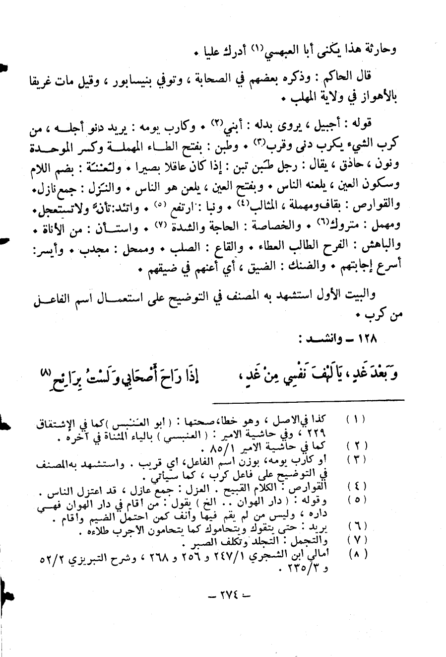 وبعد غد، يا لهف نفسي من غد، … إذا راح أصحابي ولست برائح (¬8)