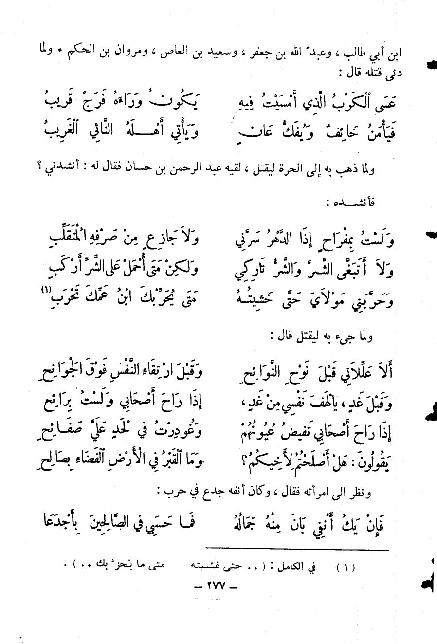 ولما ذهب به إلى الحرة ليقتل، لقيه عبد الرحمن بن حسان فقال له: أنشدني؟