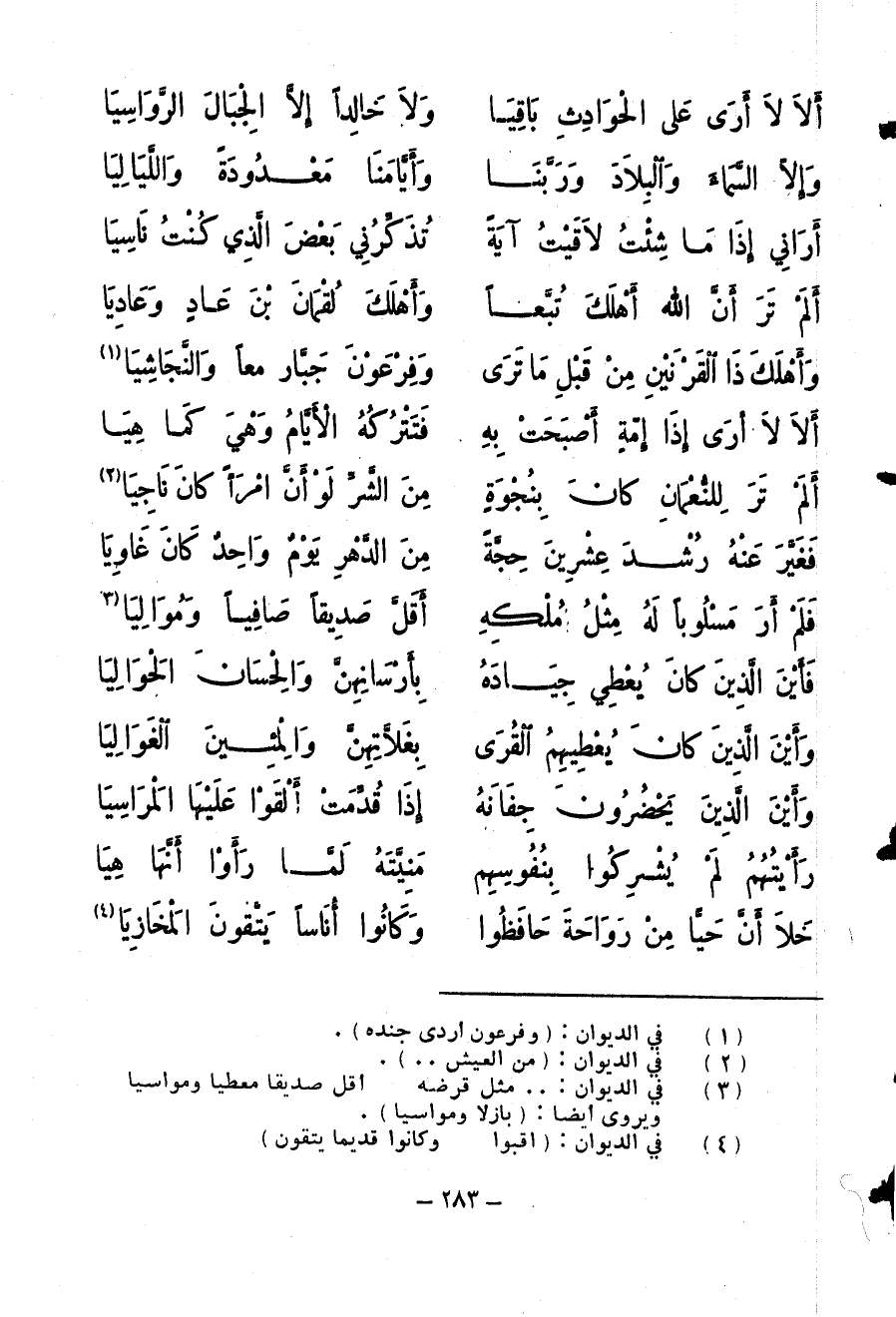 ألا لا أرى على الحوادث باقيا … ولا خالدا إلّا الجبال الرّواسيا