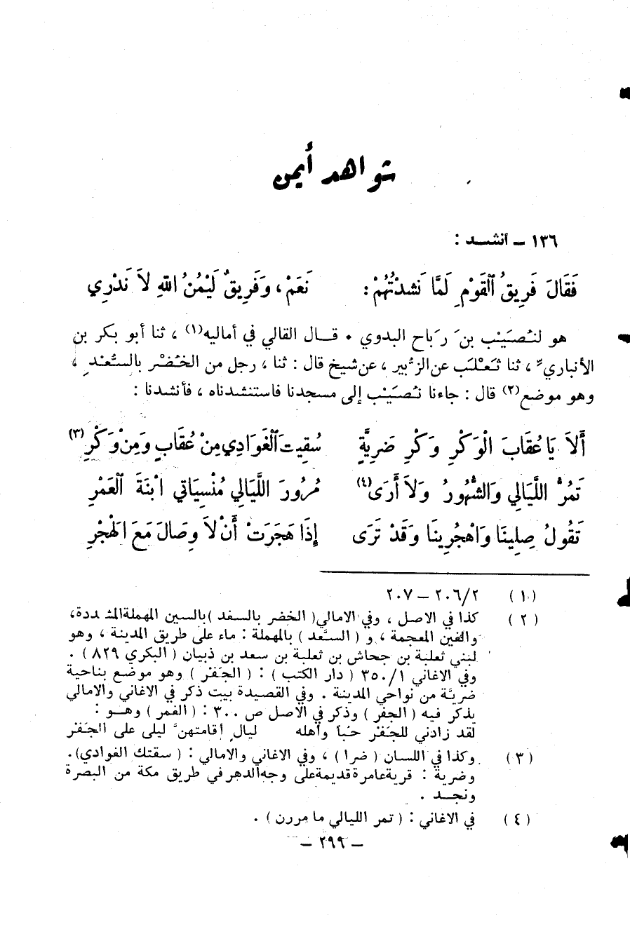وفي الاغاني 1/ 350 (دار الكتب): (الجفر) وهو موضع بناحية ضريّة من نواحي المدينة. وفي القصيدة بيت ذكر في الاغاني والامالي يذكر فيه (الجفر) وذكر في الأصل ص 300: (الغمر) وهو: