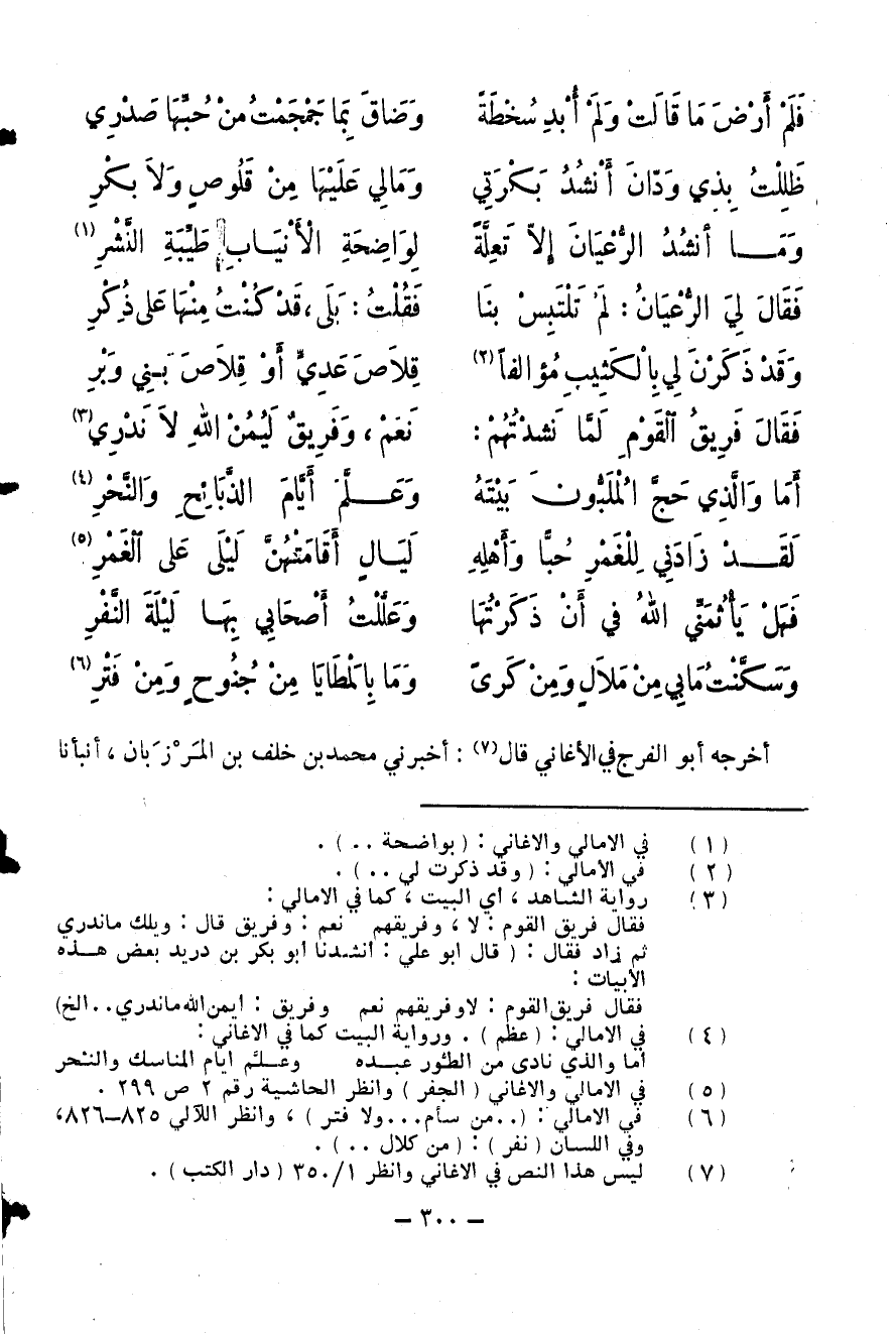 (¬7) ليس هذا النص في الاغاني وانظر 1/ 350 (دار الكتب).