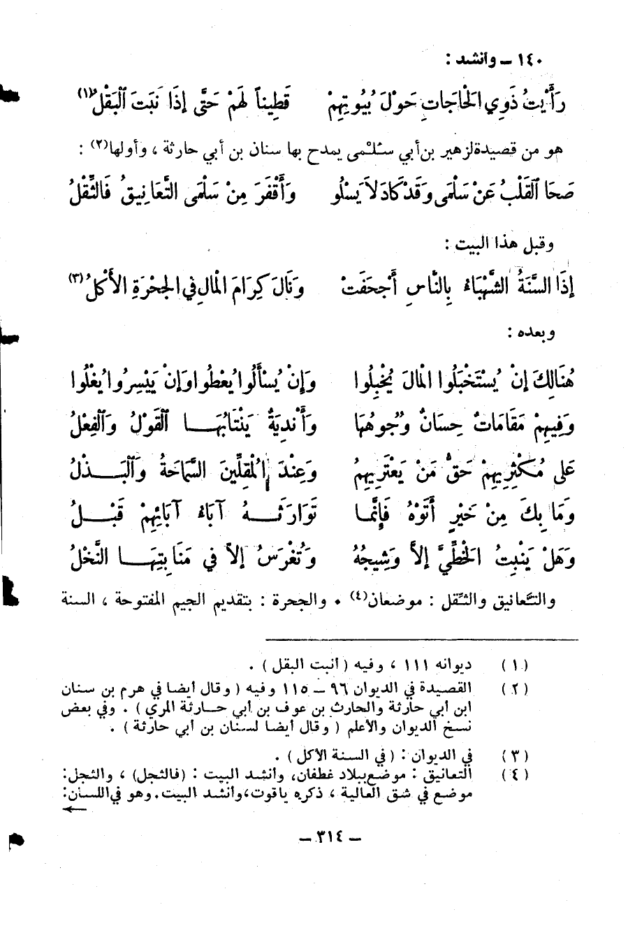 (¬2) القصيدة في الديوان 96 - 115 وفيه (وقال أيضا في هرم بن سنان ابن أبي حارثة والحارث بن عوف بن أبي حارثة المري). وفي بعض نسخ الديوان والأعلم (وقال أيضا لسنان بن أبي حارثة).