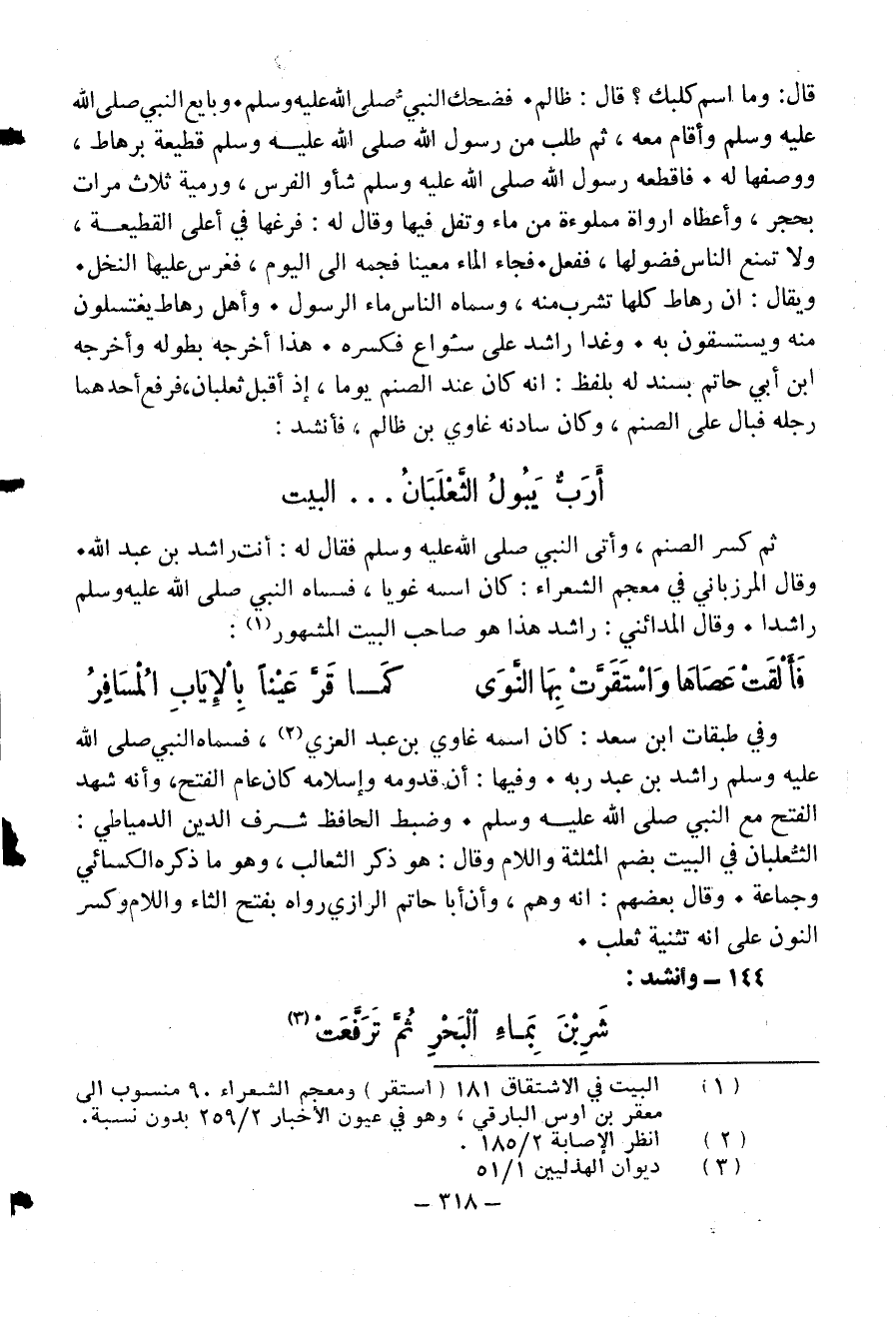 وقال المرزباني في معجم الشعراء: كان اسمه غويا، فسماه النبي صلّى الله عليه وسلّم راشدا. وقال المدائني: راشد هذا هو صاحب البيت المشهور (¬1):
