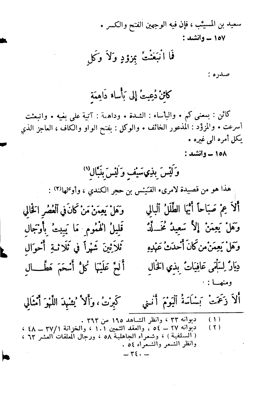 هذا هو من قصيدة لامرئ القيس بن حجر الكندي، وأوّلها (¬2):