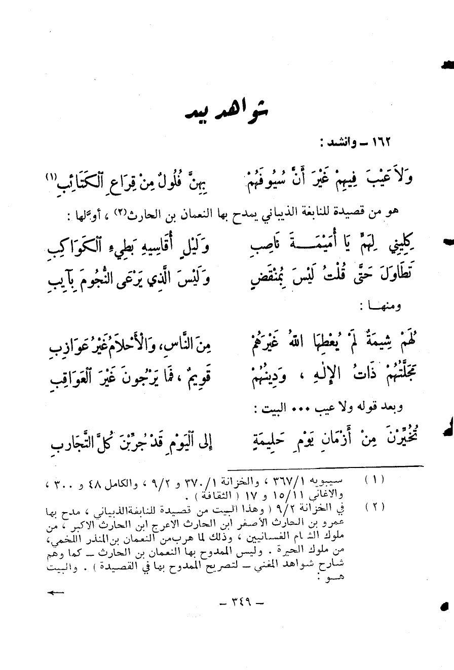 (¬2) في الخزانة 2/ 9 (وهذا البيت من قصيدة للنابغة الذبياني، مدح بها عمرو بن الحارث الأصغر ابن الحارث الاعرج ابن الحارث الاكبر، من