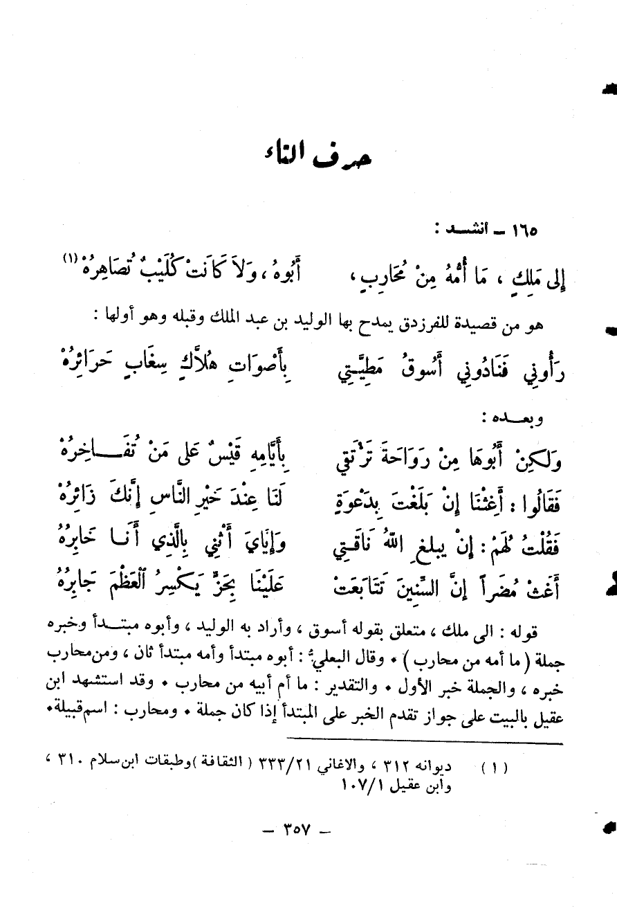 (¬1) ديوانه 312، والاغاني 21/ 333 (الثقافة) وطبقات ابن سلام 310، وابن عقيل 1/ 107