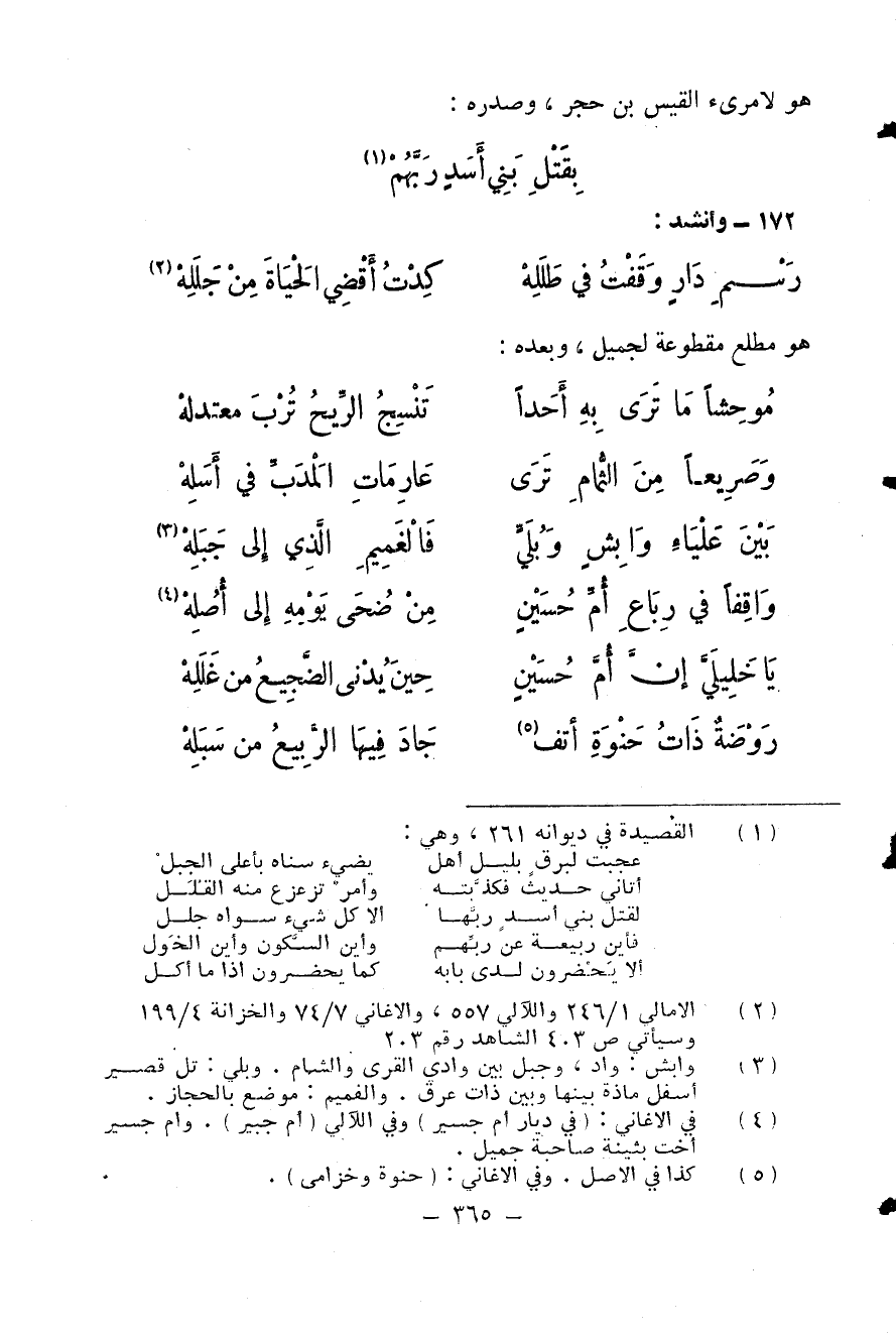 رسم دار وقفت في طلله … كدت أقضي الحياة من جلله (¬2)