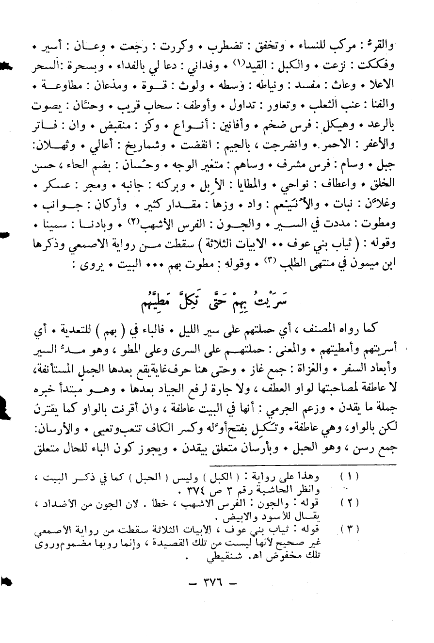 (¬1) وهذا على رواية: (الكبل) وليس (الحبل) كما في ذكر البيت، وانظر الحاشية رقم 3 ص 374.