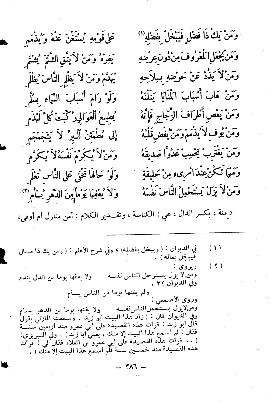ومن لا يزل يسترحل الناس نفسه … ولا يعفها يوما من الذل يندم