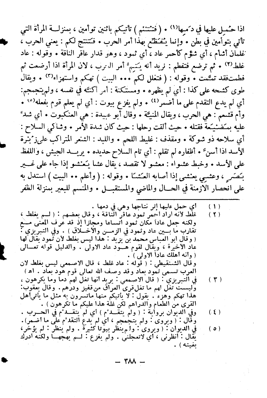 (¬2) غلط لأنه أراد أحمر ثمود عاقر الناقة، وقال بعضهم: (لم يغلط، ولكنه جعل عادا مكان ثمود اتساعا ومجازا إذ قد عرف المعنى مع تقارب ما بين عاد وثمود في الزمن والأخلاق). وفي التبريزي: