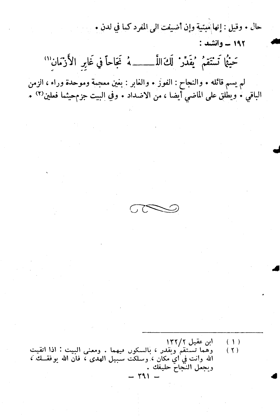 (¬2) وهما تستقم ويقدر، بالسكون فيهما. ومعنى البيت: اذا اتقيت الله وأنت في أي مكان، وسلكت سبيل الهدى، فان الله يوفقك، ويجعل النجاح حليفك.