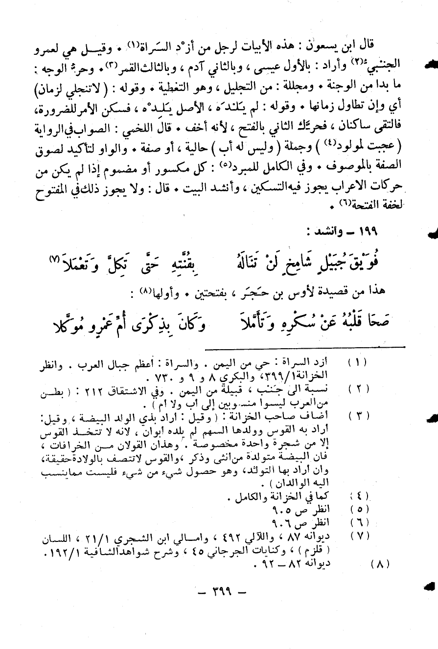 (¬1) أزد السراة: حي من اليمن. والسراة: أعظم جبال العرب. وانظر الخزانة 1/ 399، والبكري 8 و 9 و 730.
