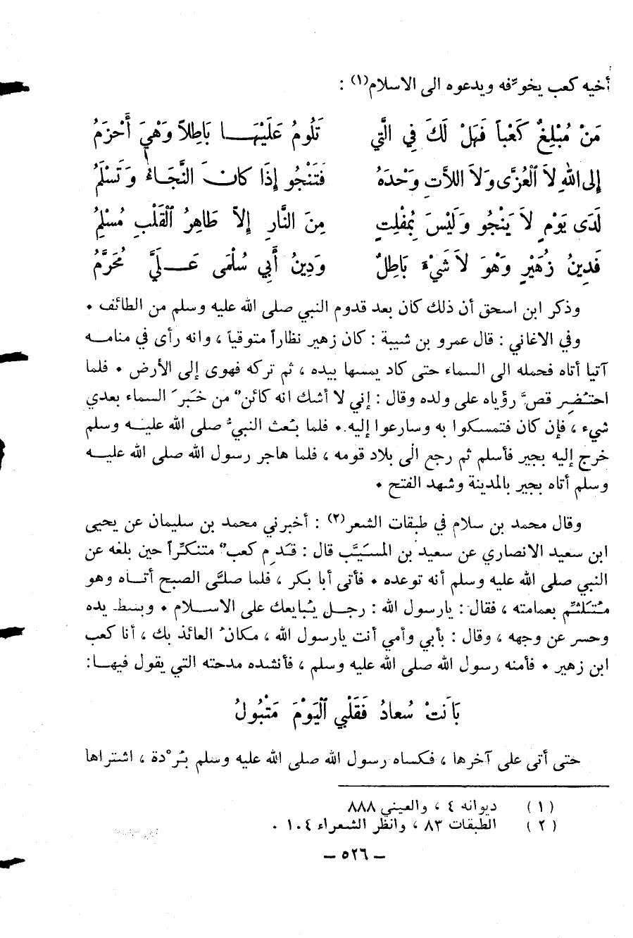 أخيه كعب يخوّفه ويدعوه الى الاسلام (¬1):