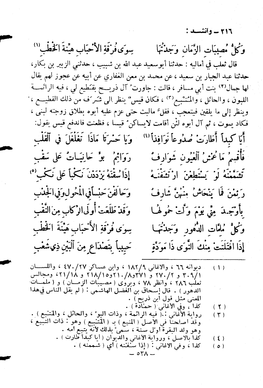 أيا كبدا أطارت صدوعا نوافذا (¬4) … ويا حسرتا ماذا تغلغل في القلب