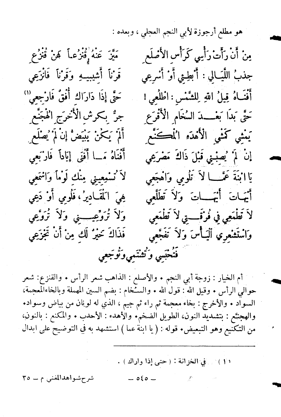 هو مطلع أرجوزة لأبي النجم العجلي، وبعده: