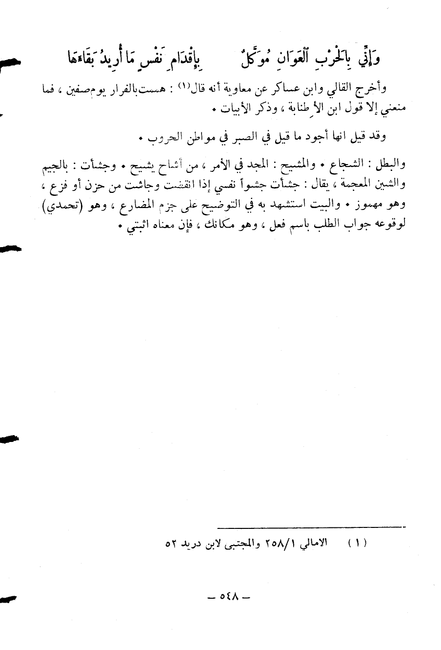 (¬1) الامالي 1/ 258 والمجتبى لابن دريد 52