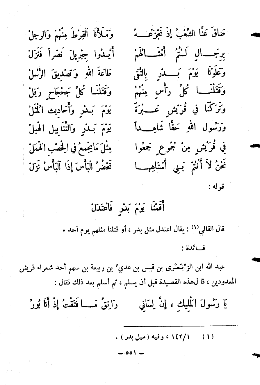 وعلونا يوم بدر بالتّقى … طاعة الله وتصديق الرّسل