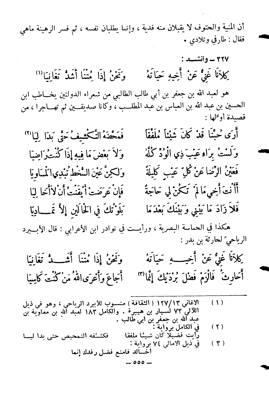 (¬1) الاغاني 13/ 127 (الثقافة) منسوب للأبيرد الرياحي، وهو في ذيل اللآلي 73 لسيار بن هيبرة. والكامل 183 لعبد الله بن معاوية بن عبد الله بن جعفر بن أبي طالب.
