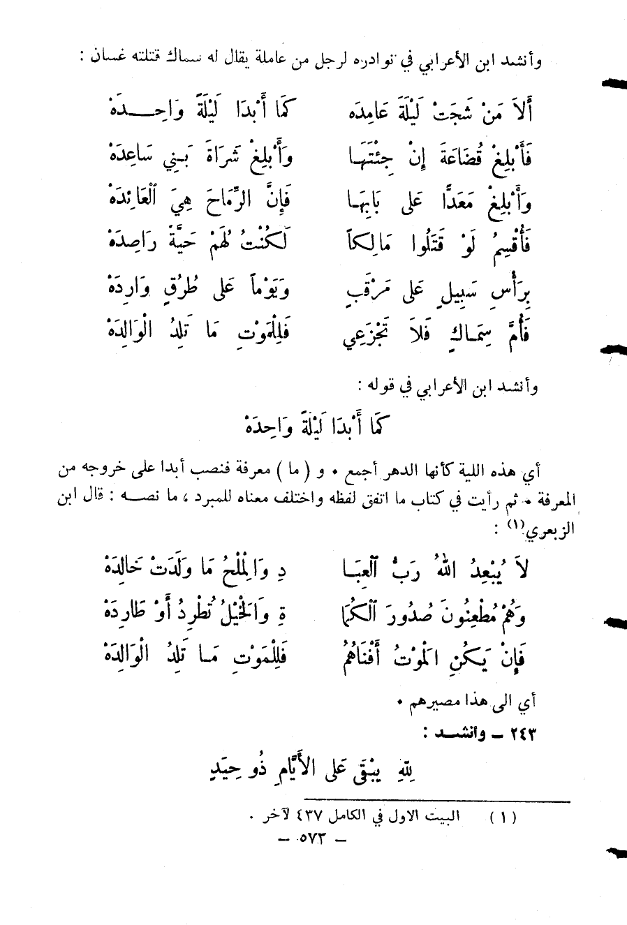 (¬1) البيت الاول في الكامل 437 لآخر.