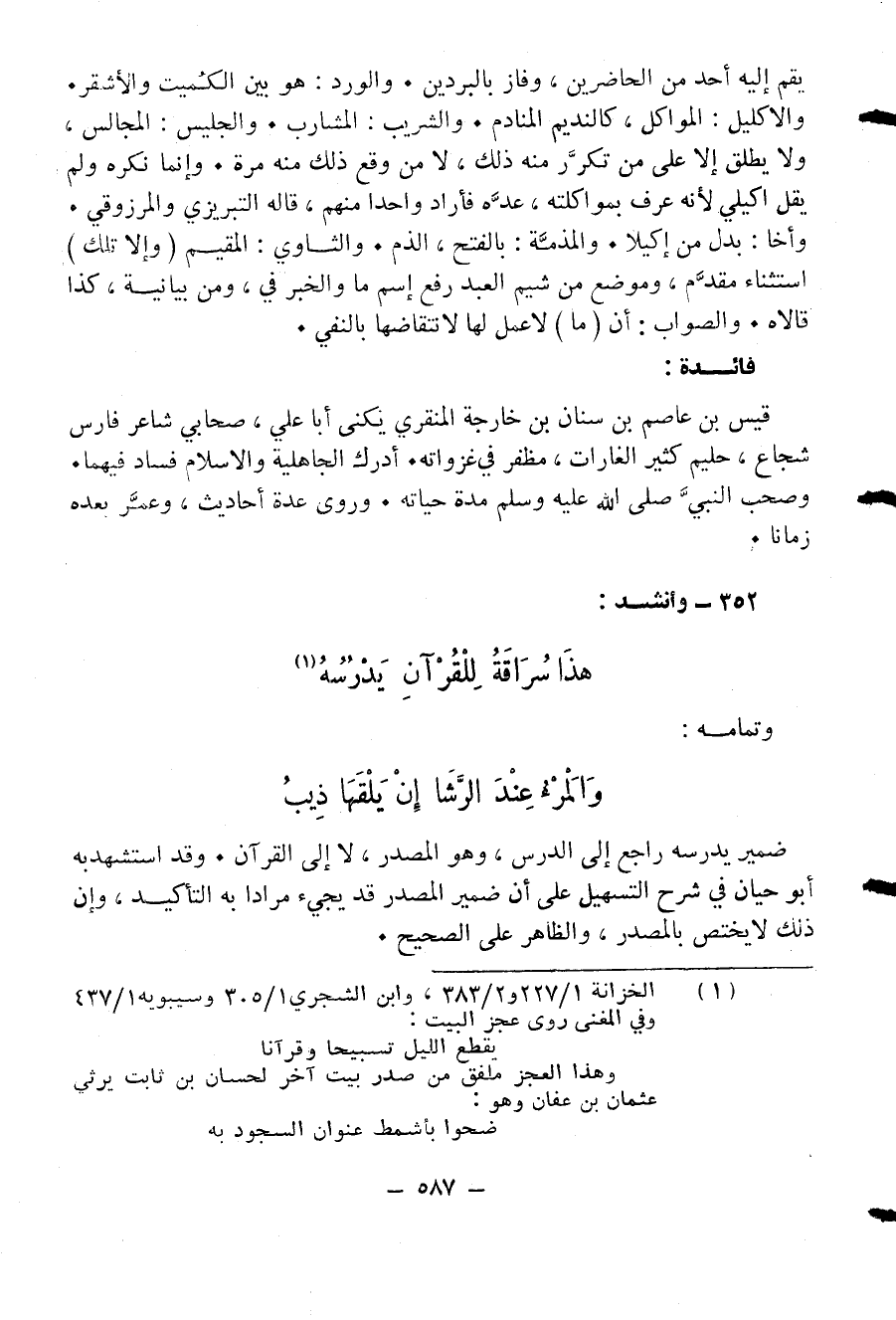 (¬1) الخزانة 1/ 227 و 2/ 383، وابن الشجري 1/ 305 وسيبويه 1/ 437 وفي المغنى روى عجز البيت: