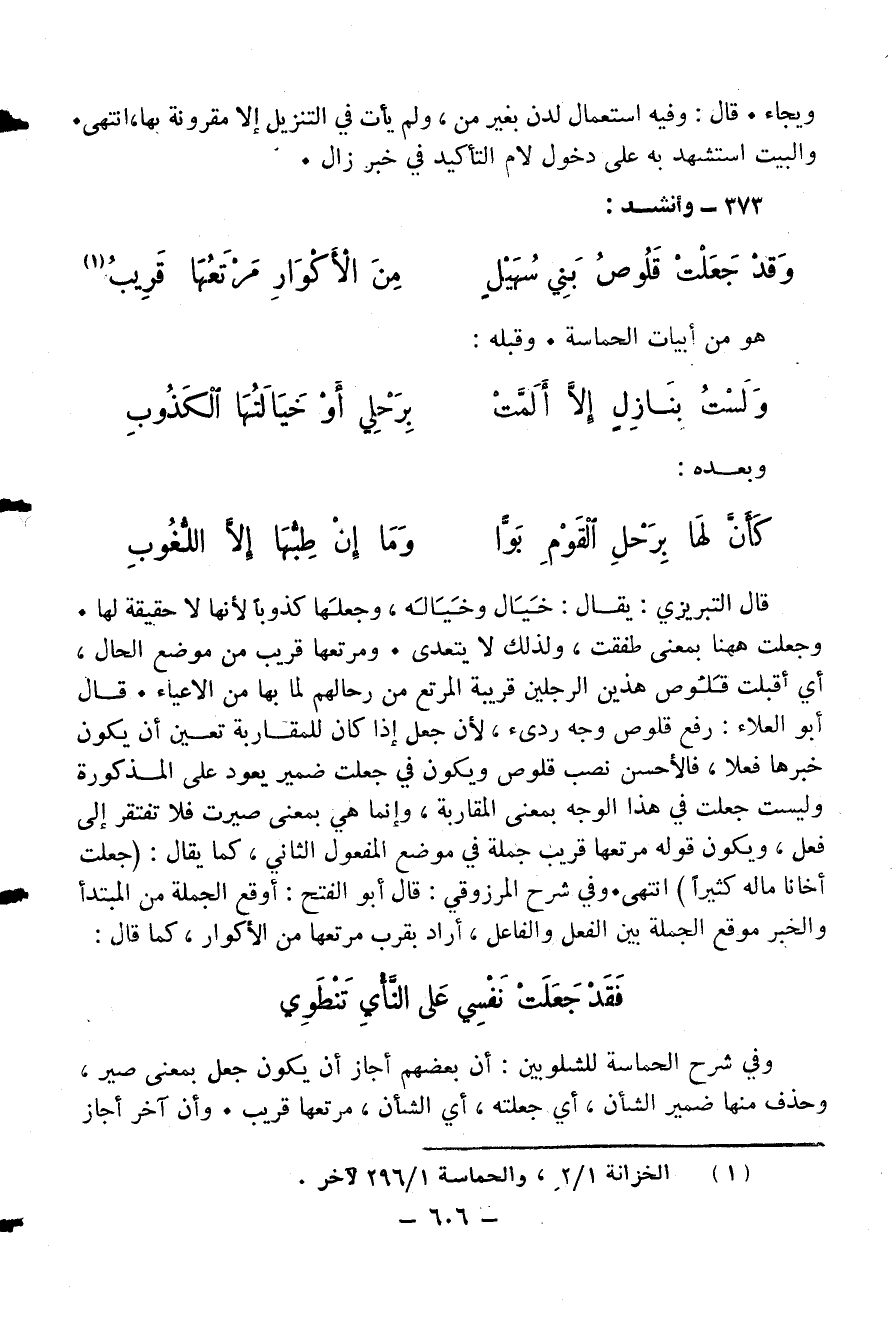 وفي شرح الحماسة للشلوبين: أن بعضهم أجاز أن يكون جعل بمعنى صير، وحذف منها ضمير الشأن، أي جعلته، أي الشأن، مرتعها قريب. وأن آخر أجاز
