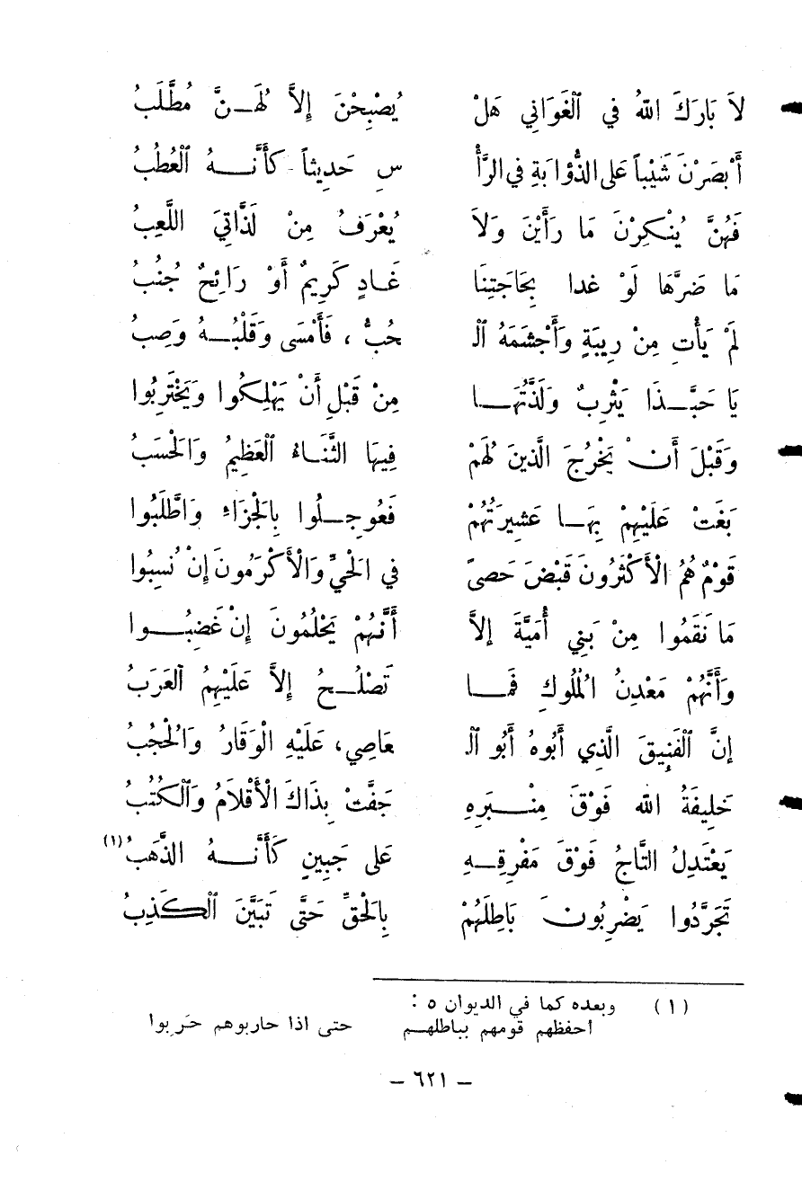 لا بارك الله في الغواني هل … يصبحن إلّا لهنّ مطّلب