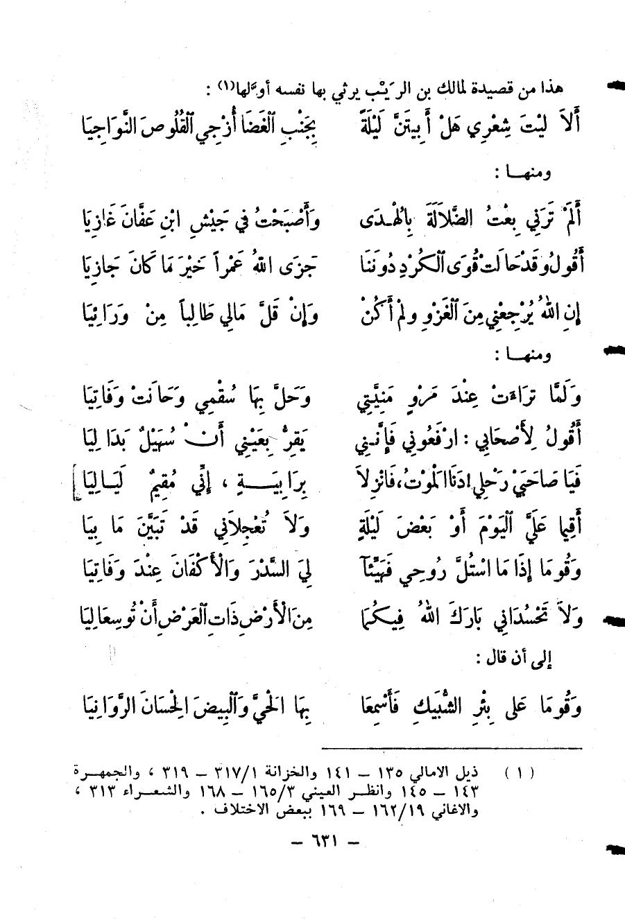 (¬1) ذيل الامالي 135 - 141 والخزانة 1/ 317 - 319، والجمهرة 143 - 145 وانظر العيني 3/ 165 - 168 والشعراء 313، والاغاني 19/ 162 - 169 ببعض الاختلاف.
