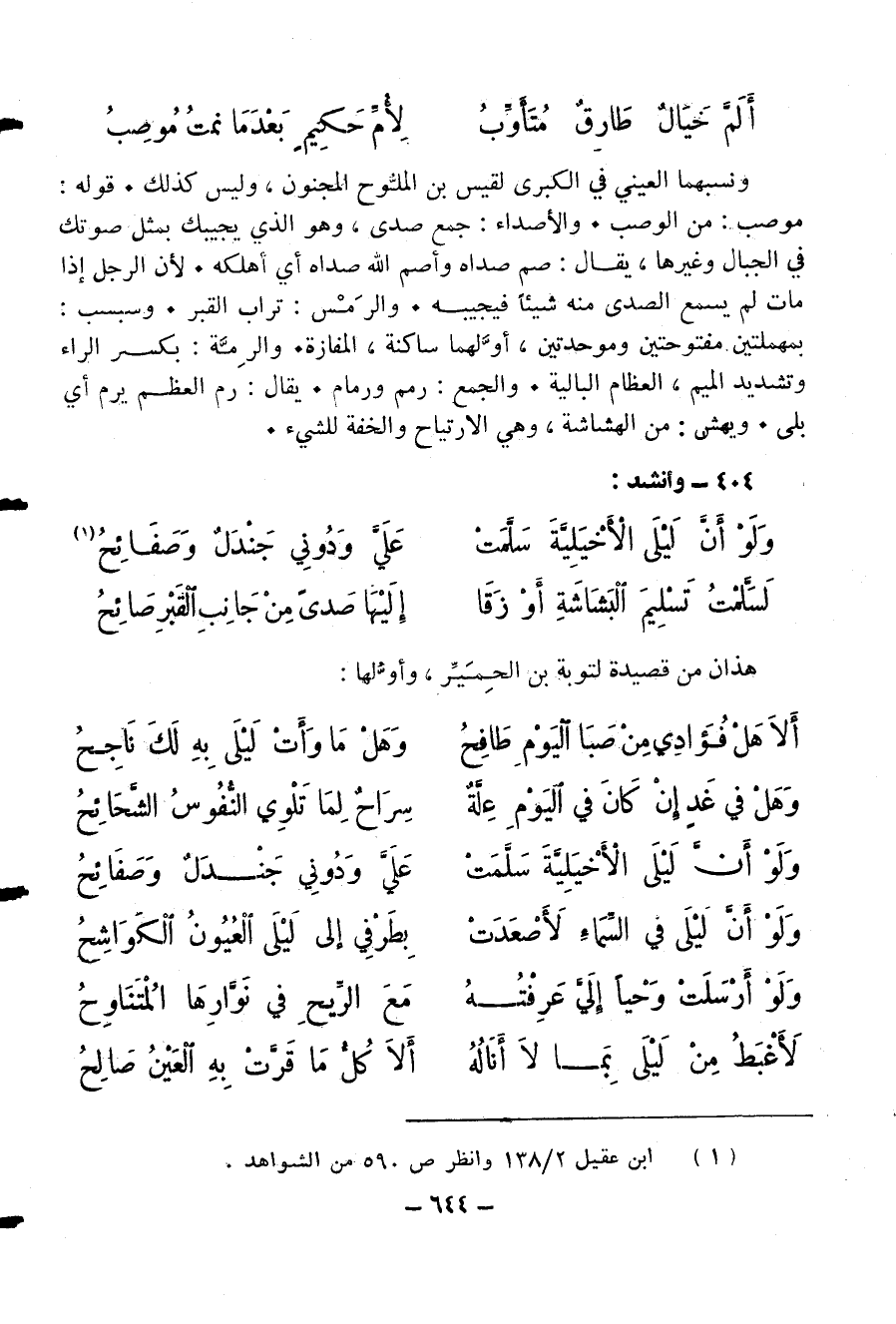 ألمّ خيال طارق متأوّب … لأمّ حكيم بعد ما نمت موصب