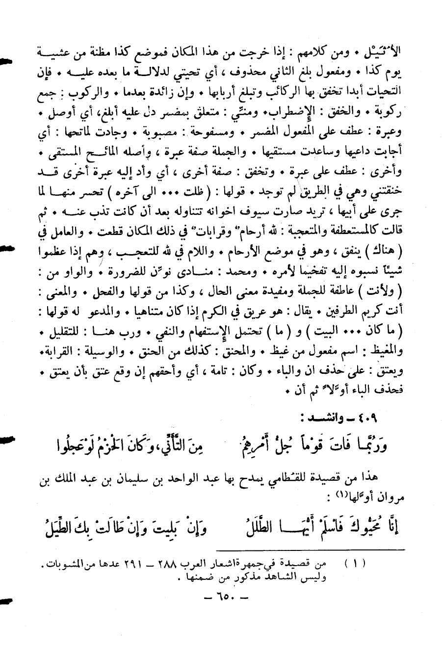إنّا محيّوك فاسلم أيّها الطّلل … وإن بليت وإن طالت بك الطّيل