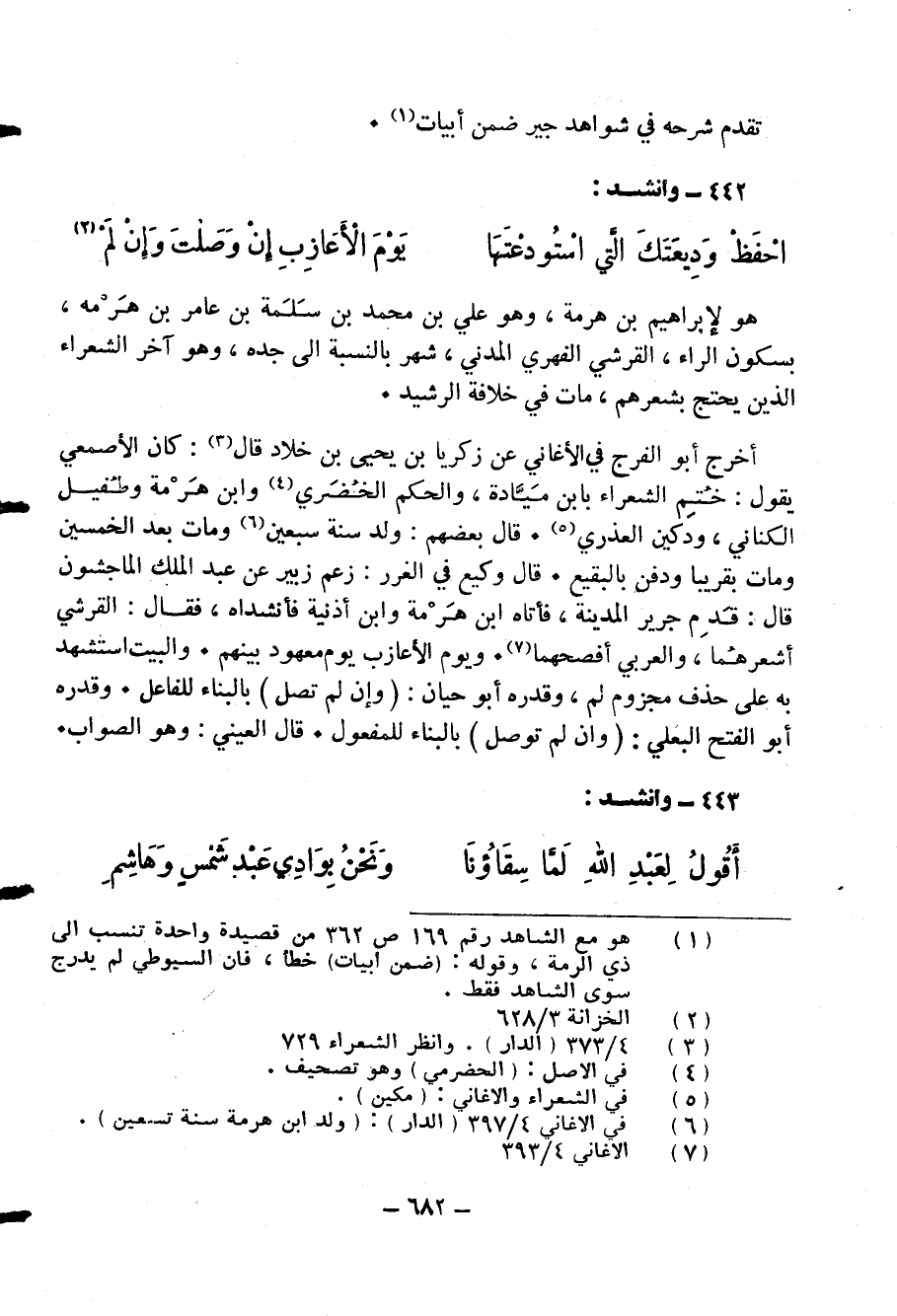 (¬1) هو مع الشاهد رقم 169 ص 362 من قصيدة واحدة تنسب الى ذي الرمة، وقوله: (ضمن أبيات) خطأ، فان السيوطي لم يدرج سوى الشاهد فقط.