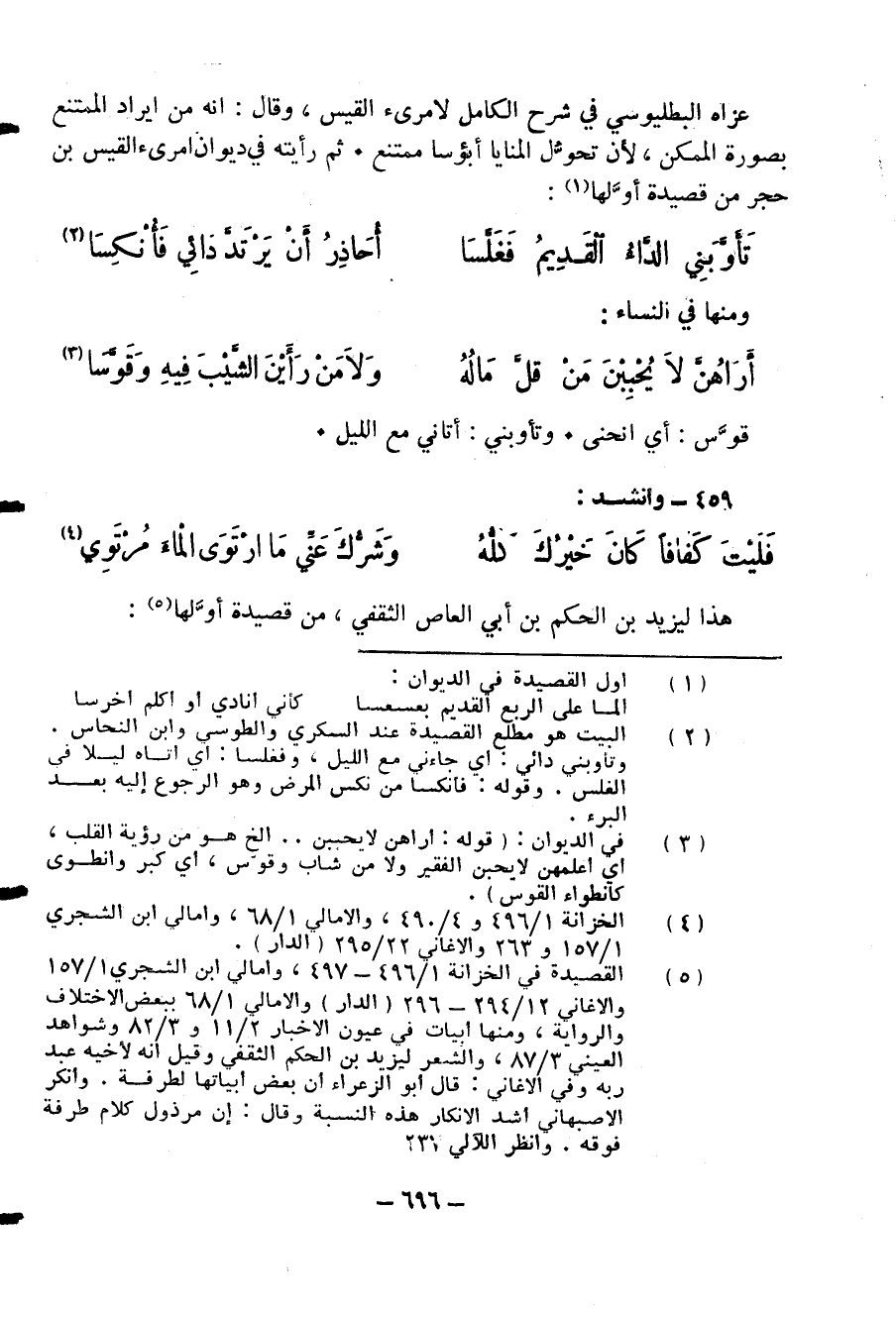 عزاه البطليوسي في شرح الكامل لامرئ القيس، وقال: انه من ايراد الممتنع بصورة الممكن، لأن تحوّل المنايا أبؤسا ممتنع. ثم رأيته في ديوان امرئ القيس بن حجر من قصيدة أوّلها (¬1):