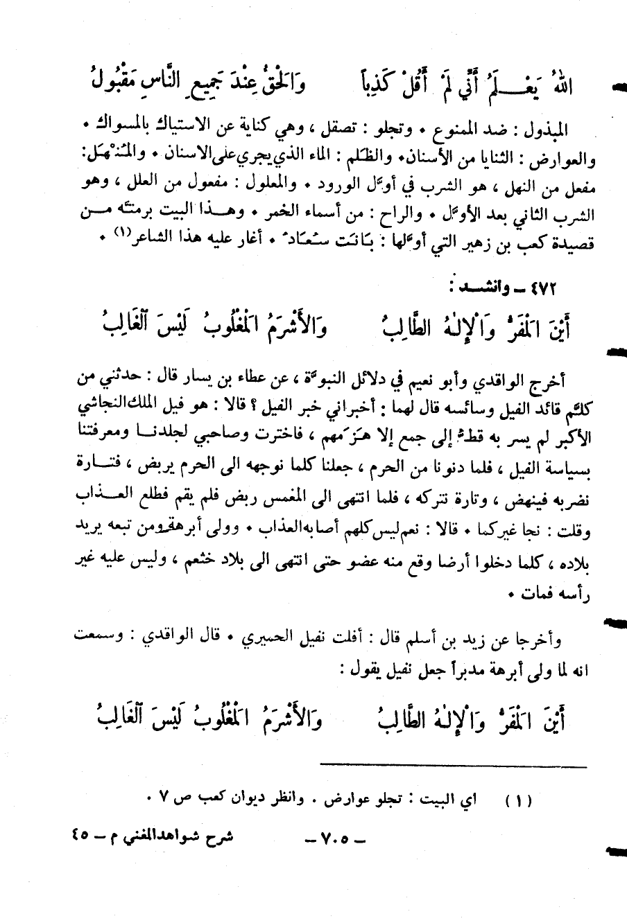 وأخرجا عن زيد بن أسلم قال: أفلت نفيل الحميري. قال الواقدي: وسمعت انه لما ولى أبرهة مدبرا جعل نفيل يقول:
