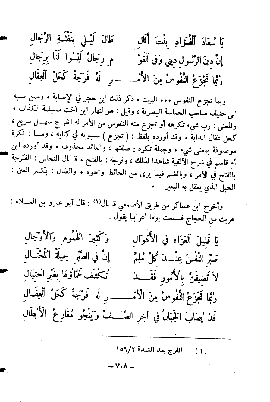 يا سعاد الفؤاد بنت أثال … طال ليلي بنفثة الرّجال