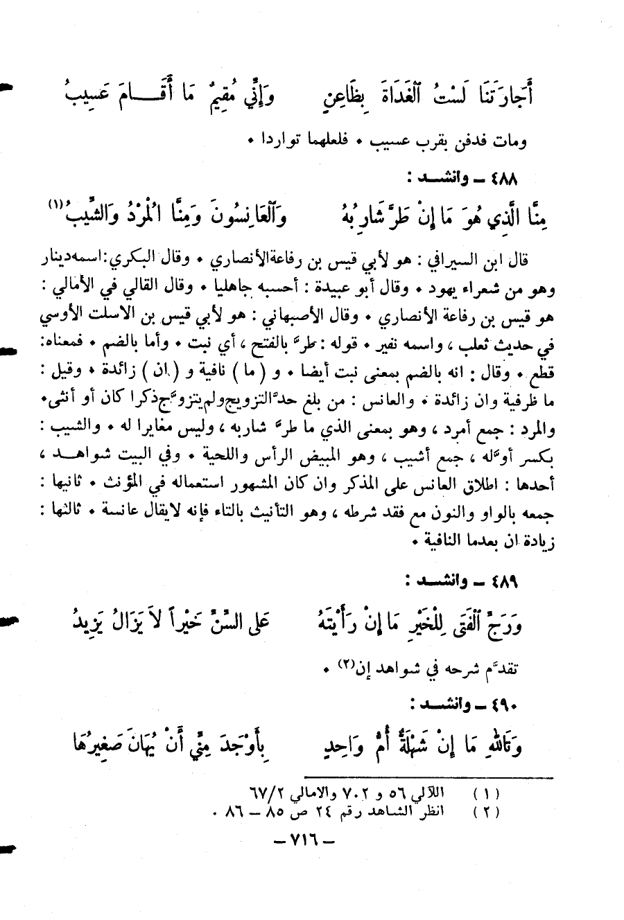 منّا الّذي هو ما إن طرّ شاربه … والعانسون ومنّا المرد والشّيب (¬1)