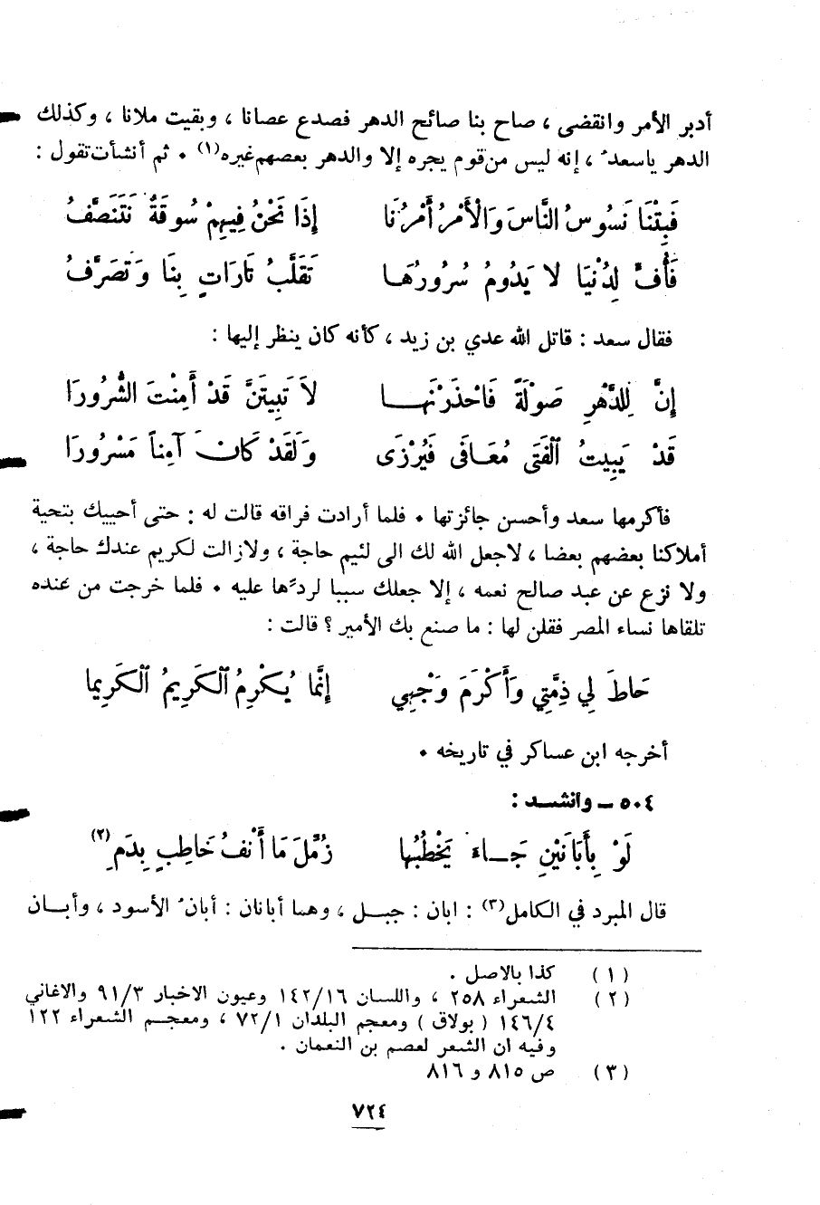 (¬2) الشعراء 258، واللسان 16/ 142 وعيون الاخبار 3/ 91 والاغاني 4/ 146 (بولاق) ومعجم البلدان 1/ 72، ومعجم الشعراء 122 وفيه ان الشعر لعصم بن النعمان.