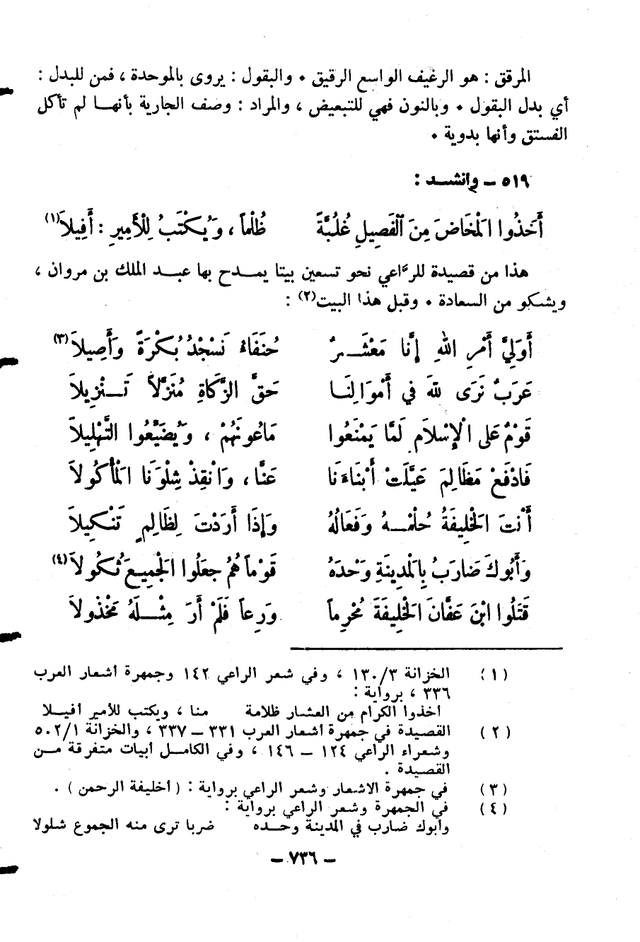 (¬2) القصيدة في جمهرة أشعار العرب 331 - 337، والخزانة 1/ 502 وشعراء الراعي 124 - 146، وفي الكامل أبيات متفرقة من القصيدة.