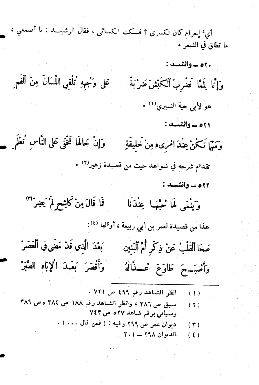 أيّ إحرام كان لكسرى؟ فسكت الكسائي، فقال الرشيد: يا أصمعي، ما تطاق في الشعر.
