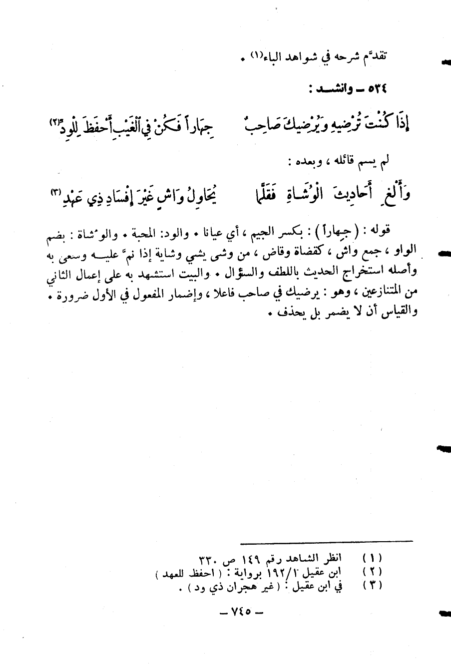 (¬2) ابن عقيل 1/ 192 برواية: (احفظ للعهد).