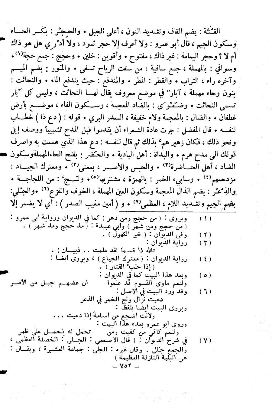 القنّة: بضم القاف وتشديد النون، أعلى الجبل. والحجر: بكسر الحاء وسكون الجيم، قال أبو عمرو: ولا أعرف إلا حجر ثمود، ولا أدري هل هو ذاك أم لا؟ وحجر اليمامة: غير ذاك، مفتوح. وأقوين: خلين. وحجج: جمع حجة (¬1).