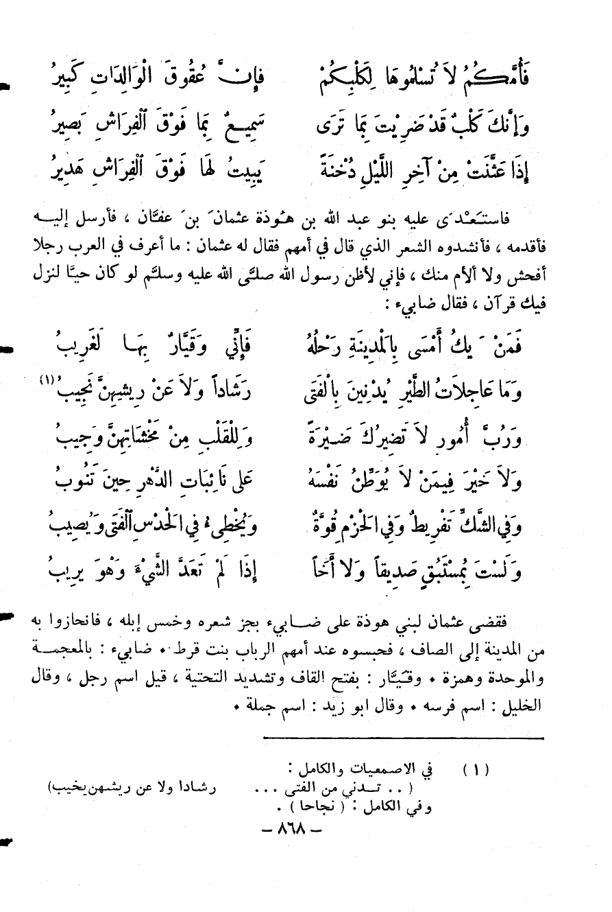 (¬1) في الاصمعيات والكامل: