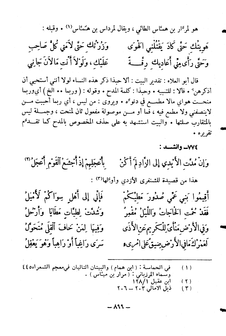 (¬1) في الحماسة: (ابن همام) والبيتان التاليان في معجم الشعراء 445 وسماه المرزباني: (مرار بن ميّاس).