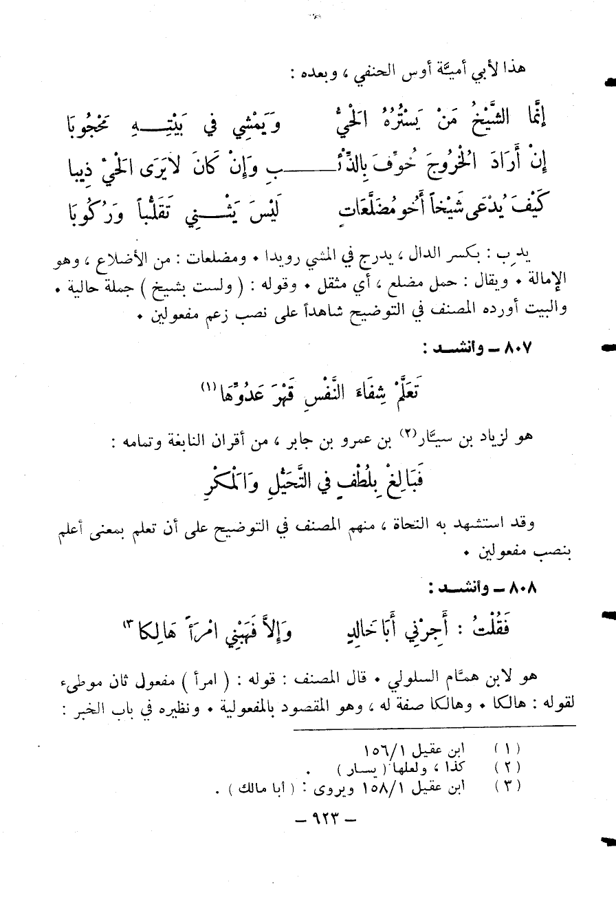 (¬3) ابن عقيل 1/ 158 ويروى: (أبا مالك).