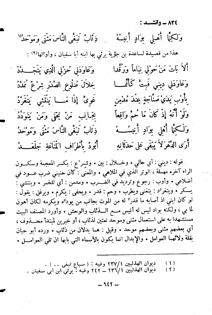 (¬2) ديوان الهذليين 1/ 236 - 242 وفيه: يرثي ابن أبي سفيان.