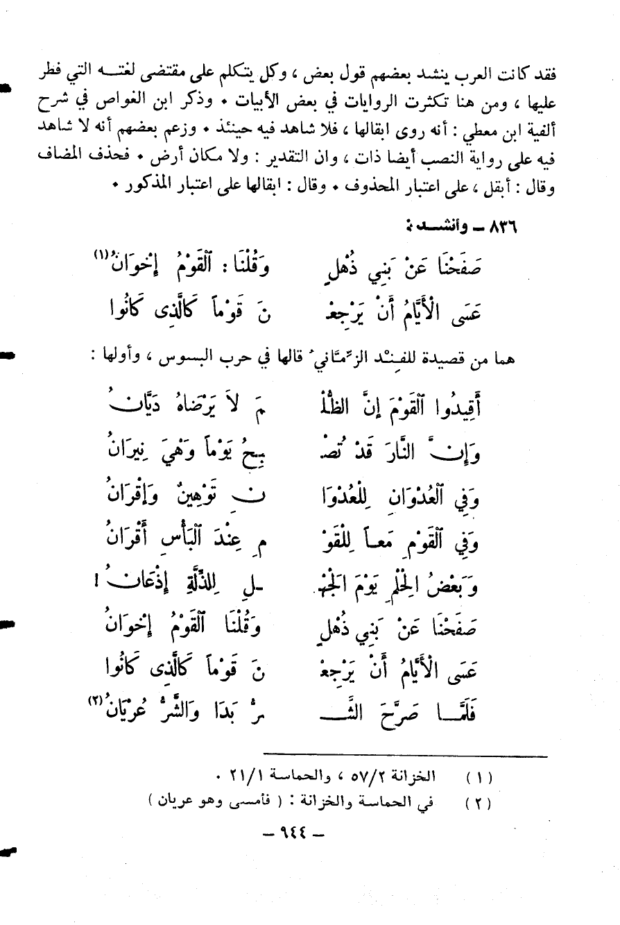 صفحنا عن بني ذهل … وقلنا القوم إخوان