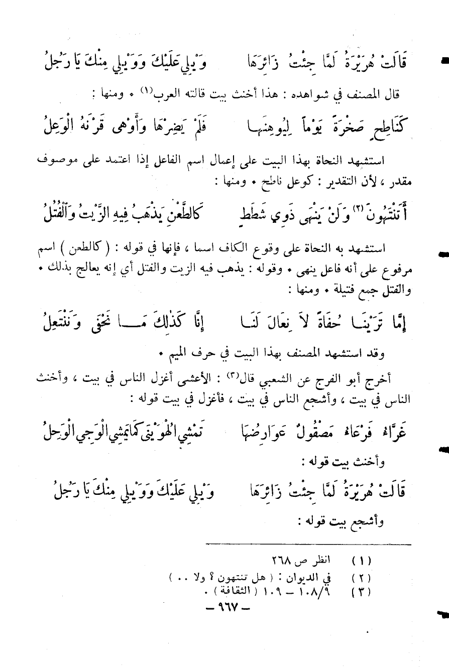 استشهد به النحاة على وقوع الكاف اسما، فإنها في قوله: (كالطعن) اسم مرفوع على أنه فاعل ينهى. وقوله: يذهب فيه الزيت والفتل أي إنه يعالج بذلك.