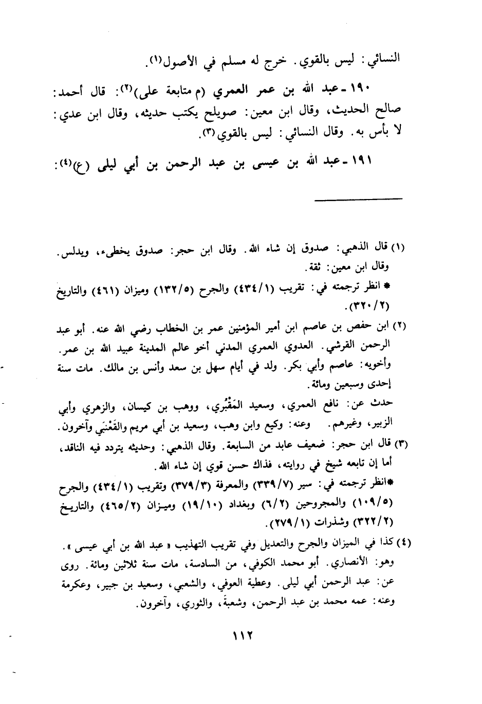 190 - عبد الله بن عمر العمري (م متابعة على) :
