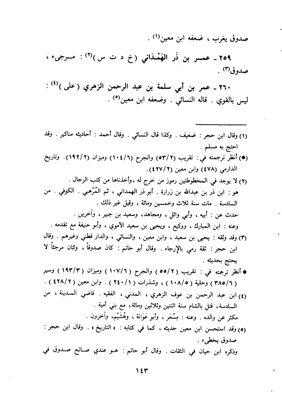 259 - عمر بن ذر الهمداني (خ د ت س) :