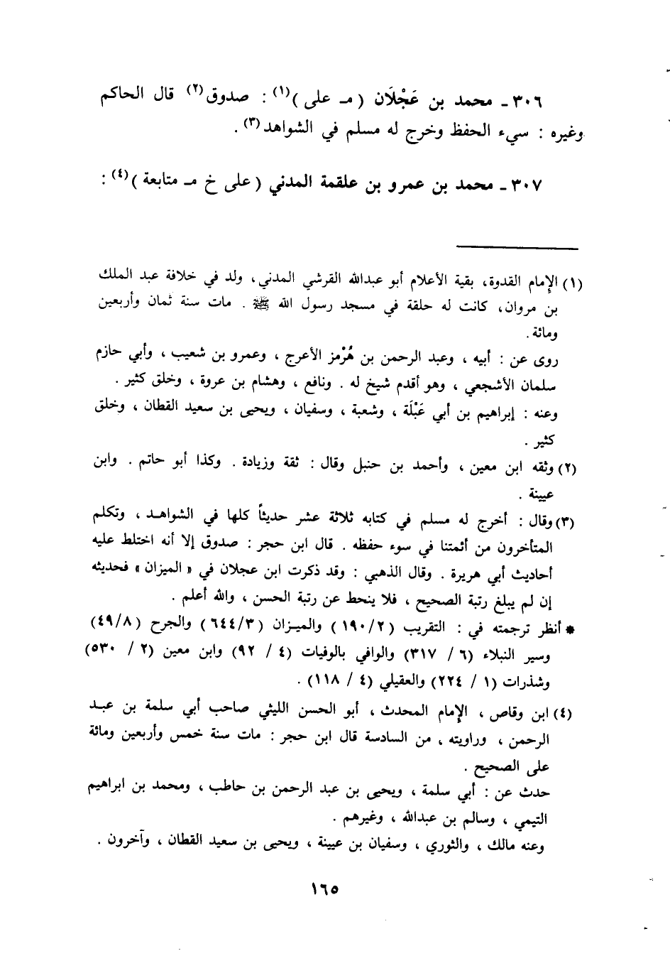 307 - محمد بن عمرو بن علقمة المدني (على خ م متابعة) :