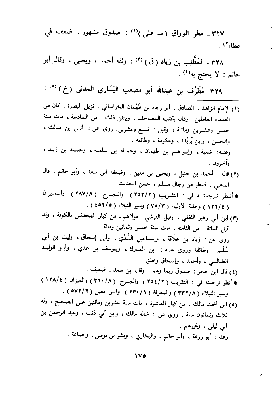 329 - مطرف بن عبد الله أبو مصعب اليساري المدني (خ) :