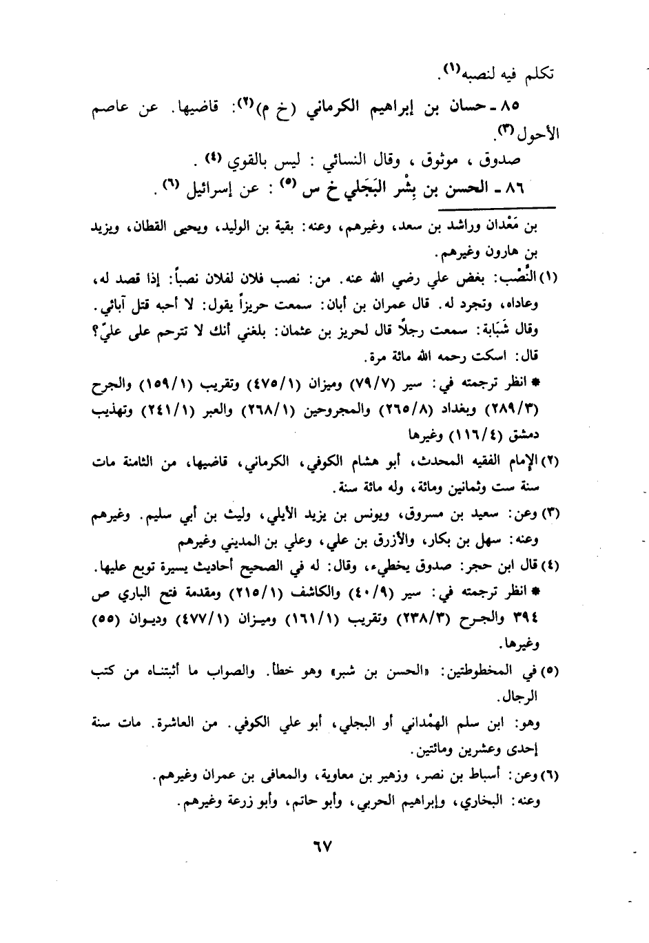 85 - حسان بن إبراهيم الكرماني (خ م) :